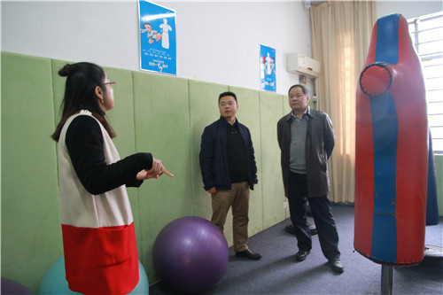 在学校心理健康教育中心,杨迪禹老师介绍了该中心的运转情况。刘建湘指出,心理健康教育是抓好学生安全工作的基石,要贯彻落实全国教育大会精神的具体要求,要开足、上好心理健康教育课,要实行错时上班,提升心理健康教育中心服务学生的能力。他表示,学校将在人、财、物等方面为心理健康教育提供强有力的保障。