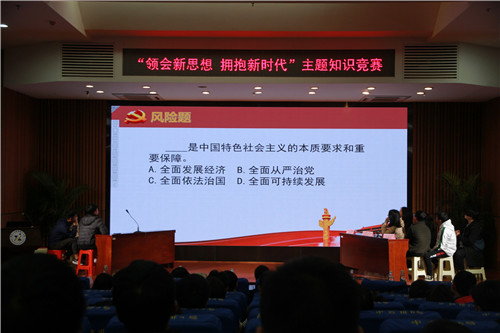为深入了解我校青年学生掌握党的十九大理论知识和习近平新时代中国特色社会主义思想的程度,11月20日下午,一场通过手机APP抢答的知识竞赛在我校图书馆活动中心举行。来自全校7个二级学院的21名选手,通过3轮PK,决胜出冠亚季军。本次活动由我校青年马克思主义学习社策划、组织,200余名学生全程参与了现场互动。