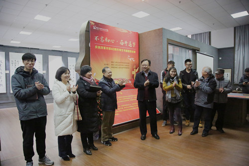 本网讯 1月14日下午,由我校宣传统战部、校工会、校团委主办的“庆祝改革开放40周年书画摄影展”启动仪式在图书馆艺术展厅举行。我校党委副书记陈超、副校长张志勇、宣传统战部、校工会、校团委负责人及师生代表共同参加了启动仪式。