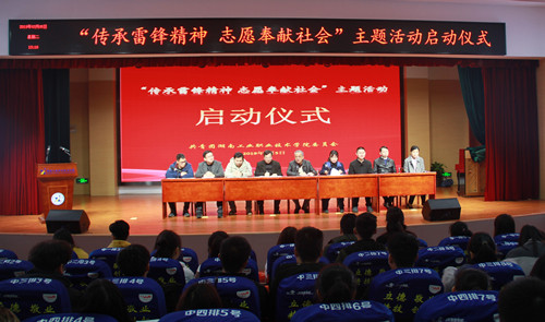 本网讯 3月5日是毛泽东同志“向雷锋同志学习”题词56周年纪念日,下午,我校“传承雷锋精神,志愿服务社会”主题教育活动启动仪式在大学生活动中心举行,副校长邓建国,团委、学生处、招生就业处、各二级学院相关负责人,学生志愿者及学生代表共同参与本次启动仪式,仪式由团委副书记李陟威主持。