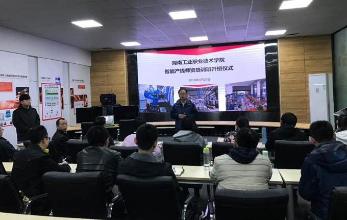 机械工程学院负责人出席了开班仪式。机械工程学院李强院长在开班仪式上表示,智能制造技术是“中国制造2025”规划中重要的突破点,近年,湖南智能制造技术快速发展,长株潭衡也立项为国家智能制造示范试点城市群,但智能制造人才严重短缺问题日益凸显。他希望,通过本次教师培训,使参加培训的教师尽快掌握智能制造领域相关的知识和技能,掌握智能产线设备的使用,开展智能制造领域内专业课程教学建设和资源建设,争取早日建成一支技能水平高、专业素质强的智能制造方向的教师团队,进而打造培养智能制造高端紧缺人才的高效课程体系。