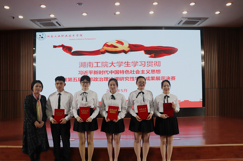 共有来自学校大一和大二所有教学班级,约9000余名学生参加了本次研究性学习竞赛。经任课老师推选、专家匿名评审等初赛、复赛环节,共有8个研究小组脱颖而出,进入决赛环节。决赛现场,8组参赛队伍依次上台,他们思路清晰、观点明确、表达流畅,淋漓尽致地展示了新时代大学生思想政治理论自主探究的创新学习方式和成果,给现场观众留下了深刻印象。经过紧张而激烈的比拼,来自会计2017-9、10班的谭宜豪、李帅、文赛风、周岭、廖红波学习小组获得了一等奖。他们将代表学校参加由湖南省教育厅主办的全省比赛。