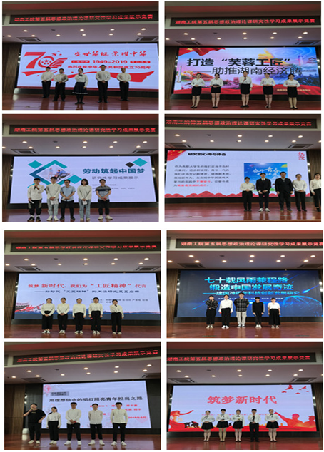 据悉,根据省教育厅《关于开展湖南省大学生学习贯彻习近平新时代中国特色社会主义思想暨第五届思想政治理论课研究性学习成果展示竞赛的通知》文件要求,我校从4月9日召开动员大会,经过一个多月的周密筹备和组织,在思政课老师的悉心指导下,学生们采取自由组合的方式,组建5人研究性学习小组,围绕“新中国70年的伟大成就及基本经验、青年与爱国•使命•担当、劳动筑起中国梦、工匠精神与大国伟业”等四个主题,进行研究性学习。