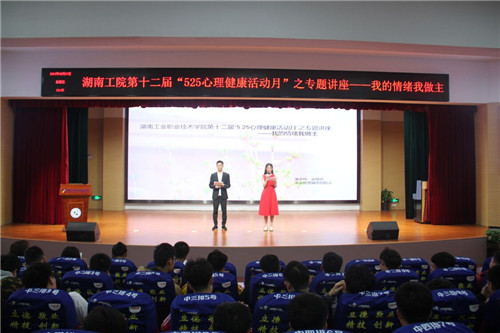 本网讯5月17日下午,由学生工作处主办的学生心理健康教育专题讲座在大学生活动中心举行。学校心理健康教育中心教师、各二级学院心理专干以及近400名学生参加了此次讲座。