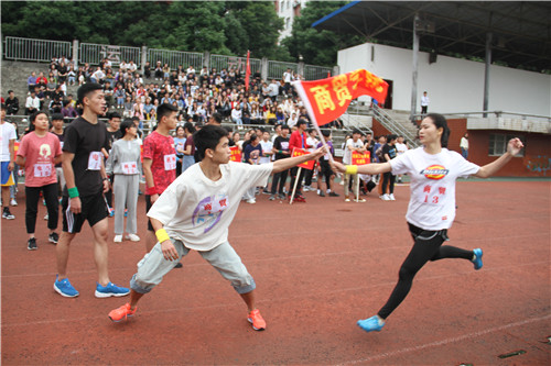 随着裁判一声枪响,蓄势待发的运动员们犹如离弦的箭一般在赛道上驰骋与拼搏,他们相互配合,一棒传给一棒,在赛场上展现着工院学子的风采。观众席上加油声、呐喊声此起彼伏,敲鼓声震耳欲聋,这声音仿佛是一种无形的力量,推动运动员们奋勇向前。