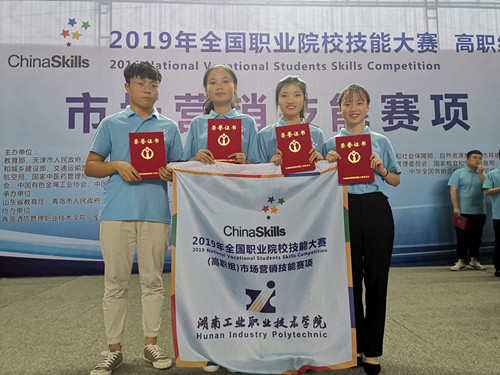 本网讯 5月27日,2019年全国职业院校技能大赛高职组“市场营销技能”赛项在青岛落幕。由我校商务贸易学院刘玄玄、何文、冯琳煜、蓸华平四位同学组成的湖南省一队荣获高职组“市场营销技能”赛项团体二等奖。该赛项由商务贸易学院副院长李清文,黄术芳担任竞赛指导教师。