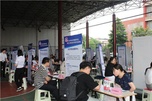 本网讯 6月12日上午,“2019年长沙市高校毕业季--yabocom(中国)官方网站专场招聘会”在我校体训馆成功举行。此次招聘会由我校与长沙市人社局、湖南人才市场有限公司联合举办。长沙市就业局局长易伟军,我校副校长邓建国及招生就业处、各二级学院负责人、就业干事参加了本次活动。