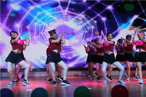 本网讯 6月20日晚,由体育艺术部主办,校学生会文体部、学生体艺协会、各二级学院文体部承办的2019年“体育文化节”广场舞大赛在大学生活动中心火热举行。校团委、学生工作处、体育艺术部、各二级学院相关领导老师以及全校学生代表约400人观看本次大赛。