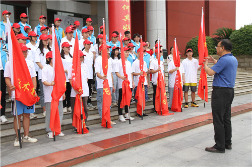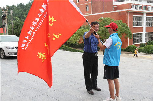 陈超代表学校预祝大家在暑假的社会实践中能得到更大的锻炼和更多的收获。他对所有参加社会实践的师生提出了四点要求和希望,一是要勇于吃苦,在实践中接受考验;二是要善于将书本上的理论知识放到实践中运用和检验,不断地增长自己的才干;三是要发挥团结向上的集体主义精神,互相帮助,乐于奉献;四是要严守纪律,始终牢记安全第一的宗旨。随后,他为各小分队授旗。