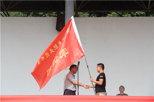 随后,陈超进行总结发言,并将军训团团旗授予军训团总指挥陈露。