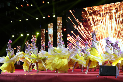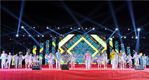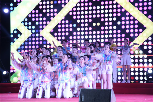 本网讯 9月27日晚,我校田径场上数千个挥动的荧光棒和手持红旗汇成了一片星海,照亮了一个特别的夜晚。“我和我的祖国”庆祝新中国成立70周年暨2019年迎新文艺晚会在这里盛大举行。