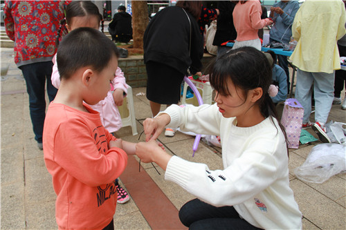 “学生们很有耐心,详细地为我讲解手链编织的过程,让我学习到了一项新技能。”活动现场,吴阿姨高兴地向学生记者讲到,在秋风微凉的天气下,同学们爱心摆台的给这个秋天添加了一些“温暖”的气息。