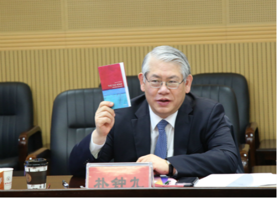 韩国草堂大学校长朴钟九在会上讲话