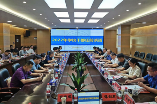 本网讯 8月26日,学校党委召开新任中层干部任前集体谈话会,党委书记刘建湘,党委副书记、校长向罗生,纪委书记王波与新提任及调整干部进行集体谈话。党委副书记陈拥贤主持会议。