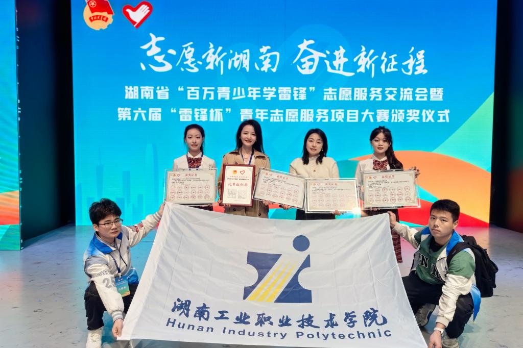 在该项赛事的省级比赛——由共青团湖南省委、湖南省文明办等部门联合举办的湖南省第六届“雷锋杯”青年志愿服务项目大赛中,我校推选的志愿服务项目《乡村工匠——楚怡精神传承践行者》斩获银奖,《代步焕新做暖心——老年人残疾人代步车清洁志愿服务》《艺路同行——碳中和工业园区绿色文化宣传项目》斩获铜奖,学校荣获优秀组织奖。
