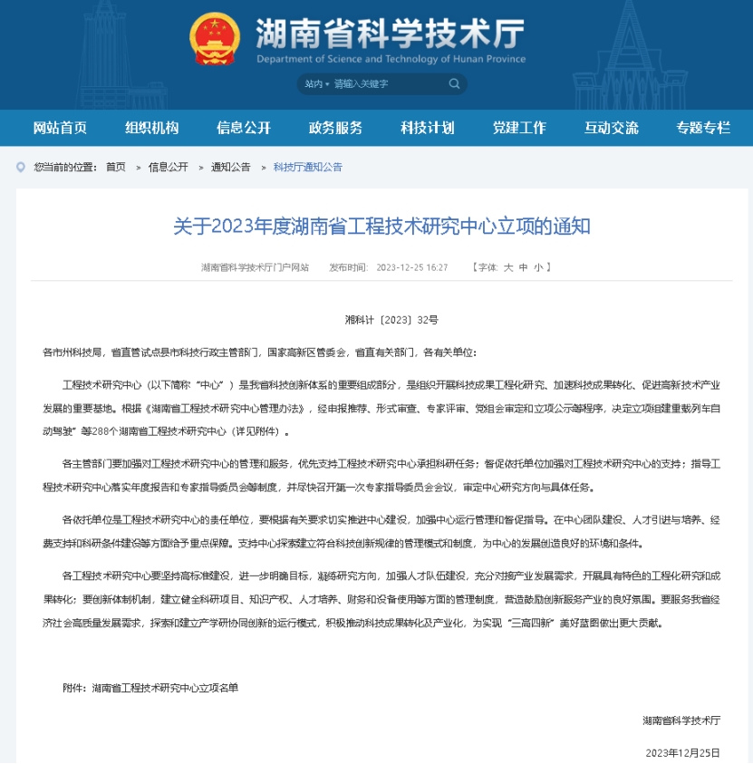 本网讯 近日,省科技厅发布《关于2023年度湖南省工程技术研究中心立项的通知》,由我校牵头与湖南华数智能技术有限公司联合申报的“湖南省精密零件数控加工工艺数字化工程技术研究中心”获批立项建设。