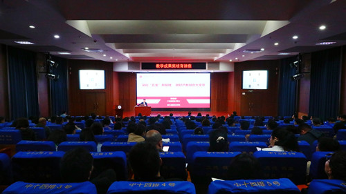 本网讯 4月13日上午,浙江金融职业学院郭福春教授应邀来我校,以《深化“五金”新基建 做好产教融合大文章》为主题,就国家级教学成果奖的培育作了学术报告。党委书记刘建湘、校长吴亮红等校领导及我校教职工共230余人聆听了报告。科技处处长易杰主持。