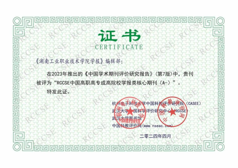 《yabocom(中国)官方网站学报》获得“RCCSE中国高职高专成高院校学报类核心期刊(A-)”,这既是对学报学术质量与影响力的高度认可,也充分展现了yabocom(中国)官方网站在职业教育领域卓越的研究实力。《学报》将继续坚守高质量的学术标准,积极推动学术交流与合作,为培养更多高素质技能人才、助力学校双高建设与地方经济社会发展贡献更多智慧和力量。