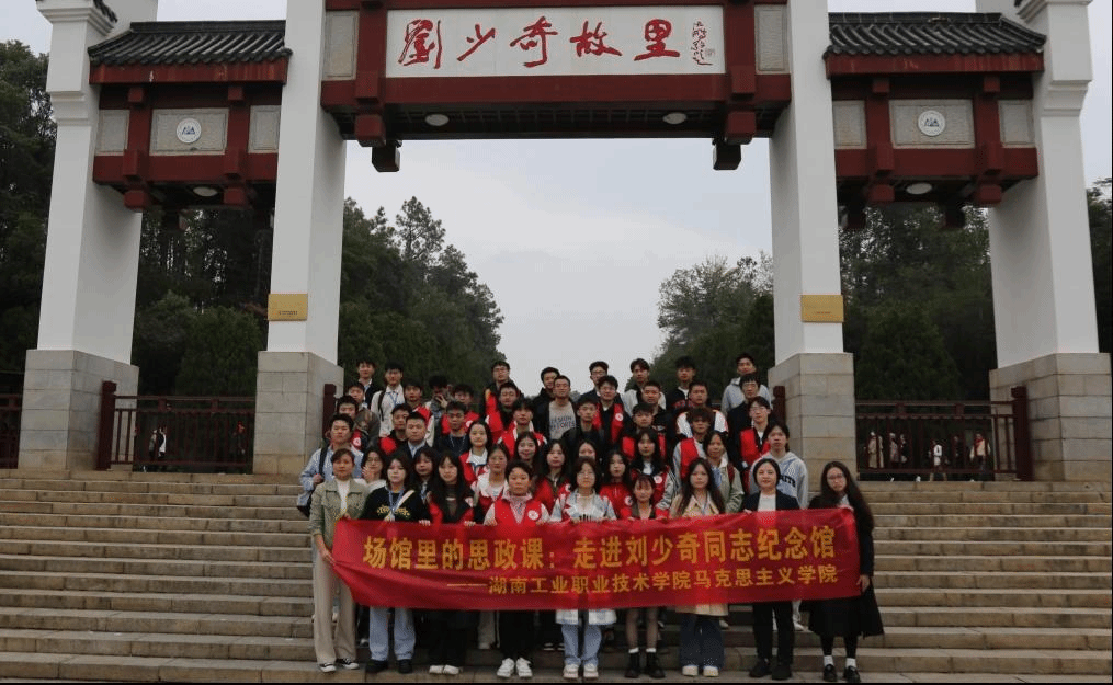 纪念馆内,一件件珍贵的革命遗物、一幅幅生动的历史画面,鲜活再现了刘少奇同志为党为民的崇高品德和高尚情操。在讲解员的引领下,师生们深刻感受到了刘少奇同志光辉、伟大的一生。参观后,廖良、李玮羿在馆内给同学们讲授了“共产党人理想高于天”“全心全意为人民服务”的专题思政课,引导大家在重温红色历史中坚定理想信念。