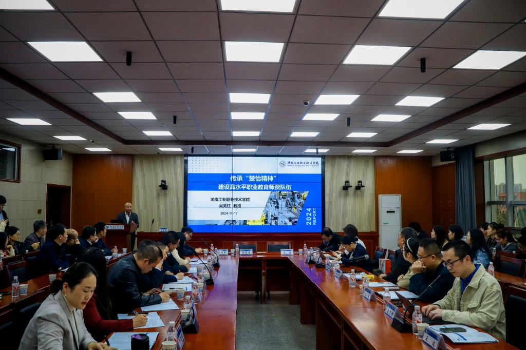 在分论坛环节,多所院校专家、青年学者、中高职校领导、优秀研究生代表围绕高质量职业教育师资培养问题进行探讨。吴亮红校长以《传承‘楚怡’精神 建设高水平职业教育师资队伍》为题作主旨分享,介绍学校的发展历程、办学特色及高水平师资队伍建设的系列举措。谢希钢副校长主持“研究生学术汇报”分论坛。