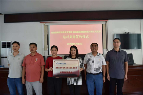 当日,商务贸易学院学生党支部与辰溪县辰阳镇锦岩村第三支部共同签署了《结对共建协议》,并举行“商务贸易学院学生党支部实践教育基地”授牌仪式,为校村合作搭建了坚实平台,为后续帮扶工作的开展奠定了基础。