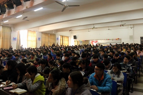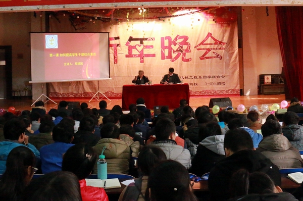 本网讯 12月30日,2015学年学生干部培训班在大学生活动中心开始第一课。学院副院长邓建国上第一课,院团委副书记伍俊晖、各系(院)学生会成员齐聚一堂,聆听生动一课。