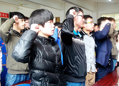 在该系全体学生党员、入党积极分子的见证下,26名新入党的同学面对鲜红的党旗庄严宣誓。