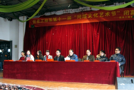 1月16日下午,信息工程系第十一届“网络文化艺术节”闭幕式暨颁奖典礼在大学生活动中心举行,信息工程系主任胡汉辉、党总支副书记肖望兵以及信息工程系全体干事和辅导员出席。信息工程系团总支文娱部李天宇同学主持闭幕式暨颁奖典礼。