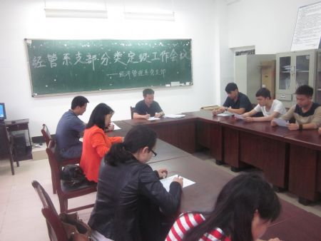 为了更好的贯彻省委教育工委和学院党委《关于认真做好教育系统2013年基层党组织分类定级工作的通知》文件的精神,5月15日下午,经济管理系召开基层党组织分类定级工作研讨会,部署基层党组织分类定级工作,该系教工支部党员教师和部分入党积极分子代表参加了此次会议。