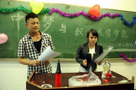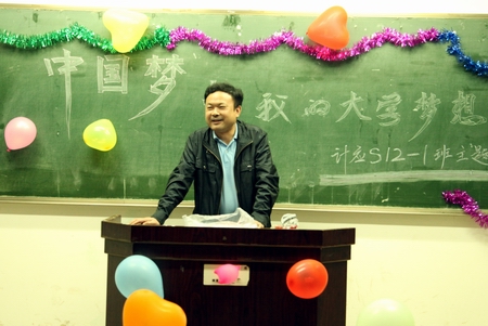 学院党委副书记周立华及信息工程系相关负责人出席班会。班会主要以演讲形式进行,围绕中国梦、大学梦想,同学们纷纷发表自己的想法。