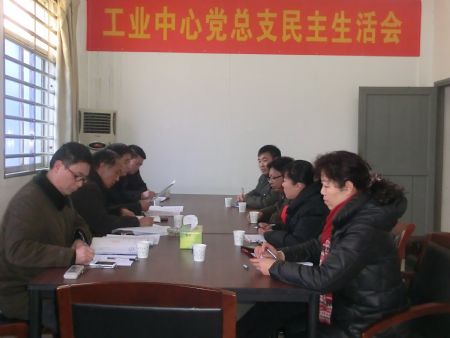 按照学院党委《关于召开2012年党员领导干部民主生活会的通知》的要求,工业中心党总支于2013年1月9日在实习工厂召开“学习贯彻党的十八大精神,切实加强领导班子思想和作风建设”为主题的民主生活会。工业中心党总支委员和总支所属实习工厂、继续教育学院、实训中心非党员中层干部参加了会议,学院联系工业中心的董建国副院长出席了会议,会议由总支组织委员任东主持。