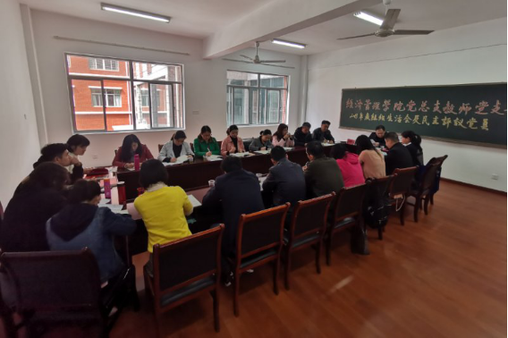 本网讯 根据《关于召开2018年度基层党组织组织生活会和开展民主评议党员有关工作的通知》湖南工院党字[2019]11号文件的通知要求和学院党总支的安排部署,3月19日下午,经济管理学院党总支教师党支部在5219会议室召开2018年度组织生活会及开展民主评议党员工作,支部全体党员参加了会议。学校党委书记刘建湘同志以普通党员身份参加本次组织生活会并做重要讲话。会议由支部书记周朕同志主持。