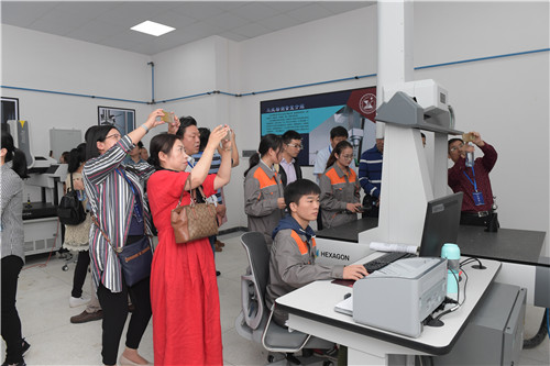 与会人员走进学校机械实训楼、数控技术实训中心、汽车实训楼,参观了机器人编程与拆装区、多轴加工区、智能产线加工区、数控车床与铣床实训区、汽车销售与维修实训中心、顶立3D打印学院等实训室,对学校产教融合校企合作的做法与经验表示赞赏。