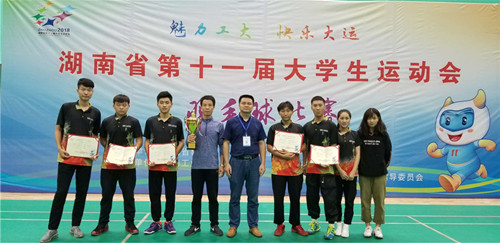 本网讯 9月30日,湖南省第十一届大学生运动会在湖南工业大学落下帷幕。我校代表团由学校纪委书记王波任团长,共组织78名学生运动员参加了男女篮球、女子排球、田径、武术、乒乓球、羽毛球等比赛项目的角逐,获“校长杯”“优秀代表团”等荣誉称号。“校长杯”是本届大运会为竞赛成绩特别突出的代表团颁发的最高荣誉奖杯。