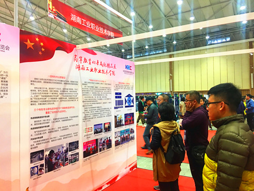 我校作为中国高等教育学会职业技术教育分会副会长单位,受邀参加了中国高教博览会“高等教育40年精品成就展”,并重点从“一流特色专业群建设、产教融合促发展 校企合作育人才、创新创业教育融入人才培养体系”等三个版块对学校教育教学成果进行了展示。