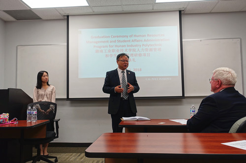 我校人力资源和学生事务管理研修团得到了美国加州州立理工大学(波莫纳)领导和老师们的高度重视,在教学内容选择、教师选配、现场考察以及学习生活上都作了精心安排,考虑周到。培训结束后,学校举行了隆重的结业仪式,颁发了结业证书。