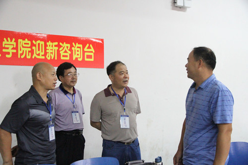 学校党委书记刘建湘(右二)一行与新生家长交流