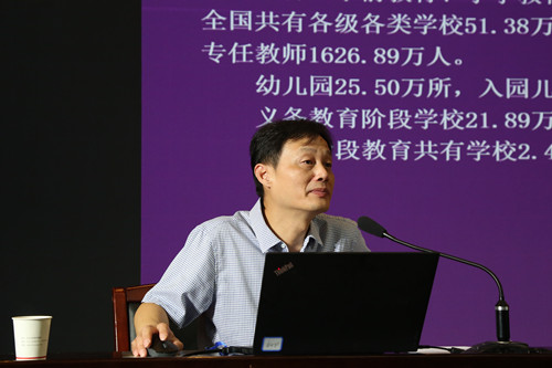 湖南师范大学教育学系主任、学位与研究生教育研究中心主任常思亮讲课