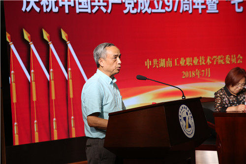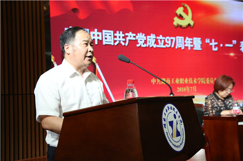 党委书记刘建湘为大会致辞,向教职工党员、离退休老党员、青年学生党员致以节日的慰问和崇高的敬意。他回顾了学校一年来在卓越院校建设、师资队伍建设、人才培养、全面从严治党、思想政治工作、教育精准扶贫等十个方面工作中取得的进步与成就,并就进一步加强和改进学校党建工作提出意见:要着力强化思想理论武装,突出党对学校工作的全面领导,提升基层党建科学化水平,增强党内政治生活“四性”,补齐基层党建工作短板。他希望全体共产党员能牢记党的宗旨,不断增强责任感和使命感,充分发挥先锋模范作用,为将学校建设为中国特色高水平职业院校而努力奋斗!