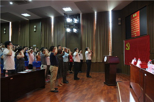 随后,在陈超领誓下,现场新党员宣誓、全体党员重温入党誓词。