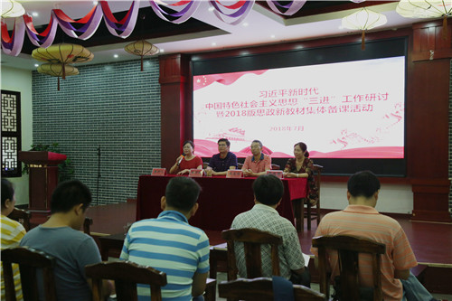 本网讯 7月7日至9日,学校思想政治教育部组织开展了“习近平新时代中国特色社会主义思想‘三进’工作暨2018版思政新教材集体备课活动”,就如何备好思政课、信息化课程建设、十九大精神进教材进课堂进头脑等进行了专题研讨与座谈。26名专兼职思政课教师参与了此项活动。