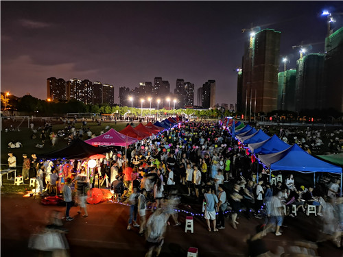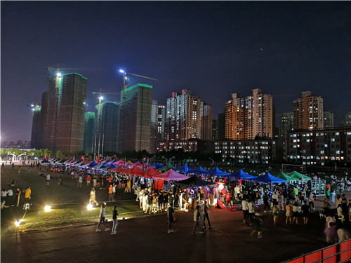 活动从晚上18:30一直持续到21:30,田径场上张灯结彩、霓虹璀璨、热闹非凡。活动过程中,部分社团在主席台表演、展示社团风采的同时,各社团在自己布置的社团展位与师生进行面对面的互动交流。每一个社团展位帐篷内都有互动游戏吸引师生参与,参加游戏的同学都可凭积分兑换礼品。