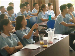 在课堂上,老师们或热情洋溢、或亲和严谨,给同学们带来了企业最新鲜最实用的知识。其中,朱新亮老师带来了《大门窗知识》、邓立峰老师带来了《内装类产品知识》、陈晓辉老师带来了《制作坚朗企业文化海报》、尚天婧老师带来了《坚朗企业文化》及《坚朗之歌》。课程内容涵盖了坚朗五金制品股份有限公司的企业文化、产品知识、职场礼仪、时间管理、沟通技巧、商务谈判、客户拜访与维护、职业生涯规划等方面。