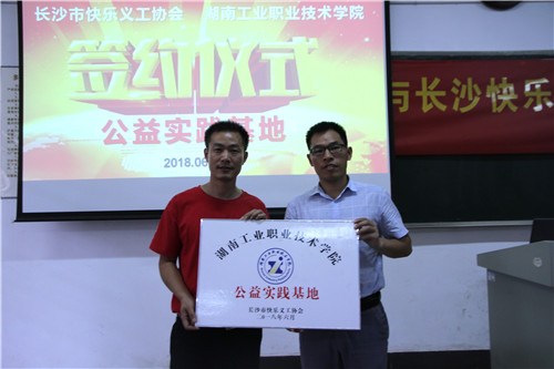 随后,双方代表签订志愿服务合作协议,举行“公益实践基地”授牌仪式,并接收我校青年志愿者协会近期回收的物资捐赠。