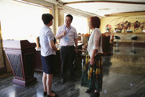 大赛专家组组长郭士义(中)现场检查比赛各环节准备工作