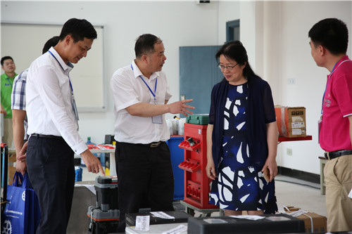 本网讯 5月15日,由湖南省教育厅承办、我校协办的2018年全国职业院校技能竞赛高职组“复杂部件数控多轴联动加工技术”赛项准备工作在汽车楼内持续进行。省教育厅副厅长应若平在我校党委书记刘建湘、校长向罗生等陪同下来到赛场内,对赛事准备工作进行检查和指导。