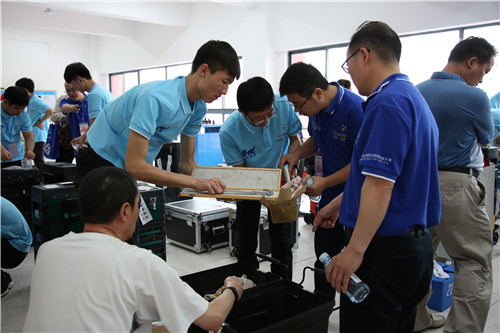 在“一对一”志愿者的引导下,51支参赛队伍依次进入赛场内部观摩场地。赛场内,相关工作人员为每支参赛队伍详细讲解竞赛设备及所用系统,介绍赛场秩序以及参赛各项注意事项。选手们则认真听、仔细看,提前熟悉竞赛设备。