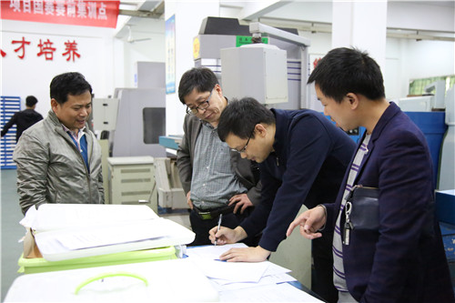 本网讯 4月15日,“工业产品数字化设计与制造”、“复杂部件数控多轴联动加工技术”赛项赛前集训完成第三次考核,为期15天的2018年全国职业院校技能大赛我校赛前集训及选拔工作圆满结束。国赛专家组组长高显宏、国赛裁判蔡志钢、省赛裁判长易守华、省赛裁判陈飞、明兴祖、孟少明、数控省赛裁判朱克义、国防科技大学杨琪为本次考核进行审核评分。我校副校长邱丽芳、教务处处长彭跃湘及赛项指导老师也来到考场巡视督查。
