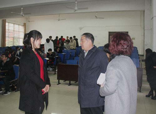 党委书记刘建湘在听取了思想政治教育部张月老师的《形势与政策》课后,与张月老师进行了交流,他肯定了张月老师的课堂导入新颖、贴合时政热点、注重师生互动。在思政部调研时,刘建湘强调,全国思想政治工作会议召开后,国家对思政工作有明确要求,学校也非常重视思政课教学和思政部师资队伍的建设。他希望在座的老师们在教学上追求卓越,共同努力,为开创学校思政工作新局面做出自己的成绩。