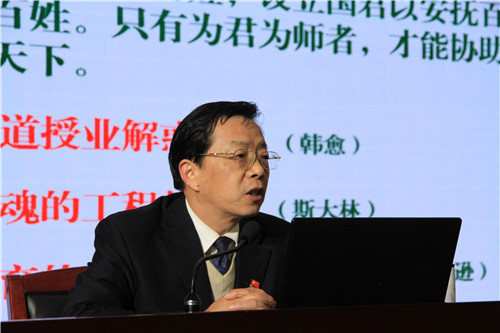 湖南省委教育工委党校刘国华教授在图书馆报告厅作了题为《加强师德修养,坚持立德树人,做人民满意的好教师》专题讲座,他分别从师德修养的沿革、师德修养的主要挑战、加强师德修养的几点思考三个方面来帮助大家了解师德以及如何加强师德修养。